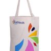 Sacola Ecológica confeccionada em sarja cru, 100% algodão, com dois tamanhos de alça e personalização em silk